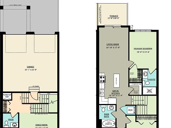 - 1,561 Sq. Ft.- Covered Front Porch- 3 Bedroom Two-Storey Townhome- 9'-0" Ceiling Height on Main Floor, 9'-0" Ceiling Height on Second Floor- Granite or Quartz Countertops in Kitchen- Large Open Kitchen featuring an Island- Engineered Hardwood Flooring in Living Room, Kitchen, and Second Floor Hallway- Tile Flooring in Foyer, Bathrooms, and Laundry Closet- Living Room opens to a 11'-0" x 8'-5" Terrace- Primary Bedroom with Walk-In Closet and 3-Piece Ensuite- Second Floor Laundry Closet- Attached 21'-1" x 22'-0" Garage with inside entry- Central Air Conditioning