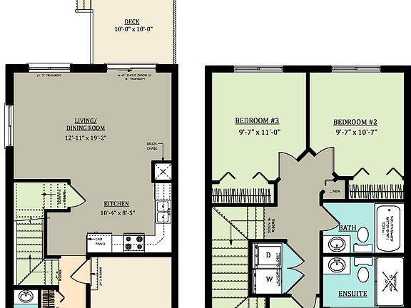 - 1,350 Sq. Ft.- Covered Front Porch- 3 Bedroom Two-Storey Townhome- 9'-0" Ceiling Height on Main Floor, 8'-0" Ceiling Height on Second Floor- Granite or Quartz Countertops in Kitchen- Open Plan Kitchen and Living/Dining Room- Engineered Hardwood Flooring in Living/Dining Room, and Kitchen- Tile Flooring in Foyer, Powder Room, Primary Ensuite Bathroom, Main Bathroom, and Laundry Closet- Living/Dining Room opens to a 10'-0" x 10'-0" Rear Pressure Treated Wood Deck- Primary Bedroom with Walk-In Closet and 3-Piece Ensuite Bathroom- Second Floor Laundry- Attached 9'-10" x 20'-8" Garage with inside entry- Central Air Conditioning