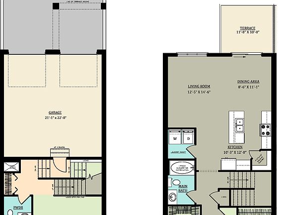 - 1,539 Sq. Ft.- Covered Front Porch- 2 Bedroom Two-Storey Townhome- 9'-0" Ceiling Height on Main Floor, 9'-0" Ceiling Height on Second Floor- Granite or Quartz Countertops in Kitchen- Large Open Kitchen featuring an Island with an Extended Breakfast Bar- Engineered Hardwood Flooring in Living Room, Dining Area, Kitchen, and Second Floor Hallway- Tile Flooring in Foyer, Bathrooms, and Laundry Room- Dining Area opens to a 11'-0" x 10'-0" Terrace- Primary Bedroom with Walk-In Closet- Second Floor Laundry Room- Attached 21'-1" x 22'-0" Garage with inside entry- Central Air Conditioning