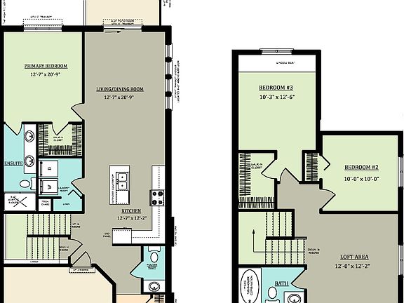 - 1,770 Sq. Ft.- Covered Front Porch- 3 Bedroom Bungaloft Townhome- 9'-0" Ceiling Height on Main Floor, 8'-0" Ceiling Height in Loft- Granite or Quartz Countertops in Kitchen- Large Open Kitchen featuring an Island with an Extended Countertop- Engineered Hardwood Flooring in Living/Dining Room, Kitchen and Main Floor Hallway- Living/Dining Room opens to 12'-0" x 10'-0" Rear Pressure Treated Wood Deck- Tile Flooring in Foyer, Powder Room, Ensuite Bathroom, Loft Bathroom and Laundry Room- Main Floor Primary Bedroom with Walk-In Closet and 4-Piece Ensuite Bathroom- Loft includes a 12'-0" x 12'-2" Living Area, plus 2 Bedrooms and 4-Piece Bathroom- Main Floor Laundry- Attached 17'-0" x 22'-0" Garage with Inside Entry- Central Air Conditioning