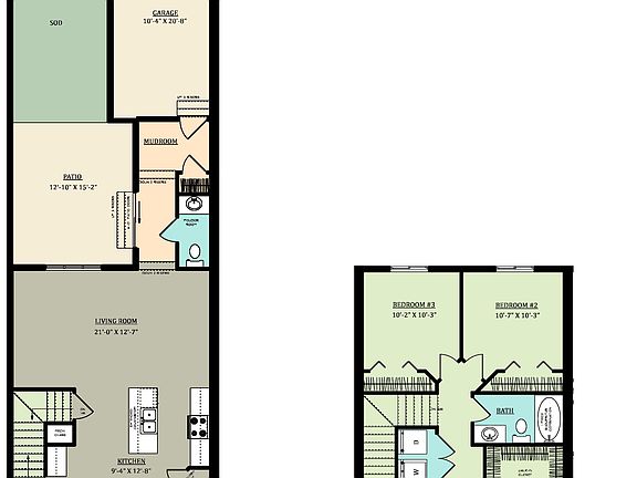 - 1,687 Sq. Ft.- Covered Front Porch- 3 Bedroom Two-Storey Townhome- 9'-0" Ceiling Height on Main Floor, 8'-0" Ceiling Height on Second Floor- Granite or Quartz Countertops in Kitchen- Large Open Kitchen featuring a 4'-0" x 4'-0" walk-in pantry, and an Island with an Extended Breakfast Bar- Engineered Hardwood Flooring in Living Room, Dining Room, and Kitchen- Tile Flooring in Foyer, Powder Room, Primary Ensuite Bathroom, Main Bathroom, Mudroom, Rear Breezeway and Laundry Closet- Breezeway opens to an enclosed 12'-10" x 15'-2" Patio- Primary Bedroom with Walk-In Closet, 3-Piece Ensuite Bathroom and Private Balcony- Second Floor Laundry Closet- Attached 10'-4" x 20'-8" Garage with inside entry- Central Air Conditioning