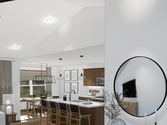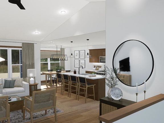 Covered porch entryOpen concept kitchenBreakfast barWalk-in pantryStone countertopsCathedral ceiling