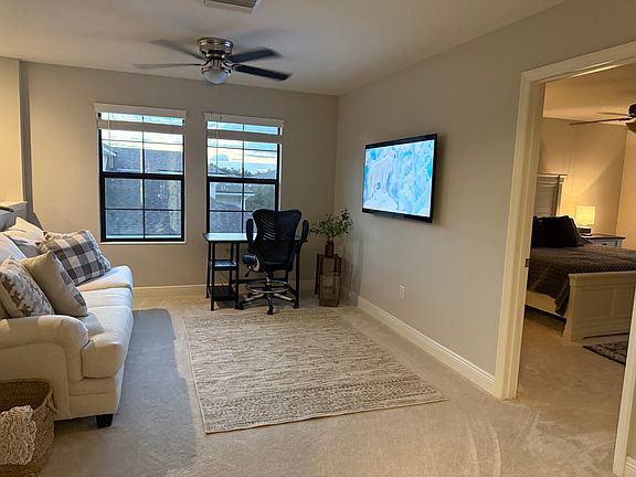 Move-in ready and fully FURNISHED 4-bedroom, 3-bath home in the sought-after Triple Creek community of Riverview. Designed for comfort and convenience, this modern home includes stylish furnishings throughout, a complete kitchen stocked with cookware, dinnerware, and small appliances, and thoughtful details that make settling in effortless. The open-concept layout features Cambria quartz countertops, stainless steel appliances, and a large island perfect for gathering. Enjoy the extended screened lanai with outdoor kitchen ideal for relaxing or entertaining. Upstairs, a spacious loft offers flexible living or workspace. Community amenities include resort-style pools, clubhouse, walking trails, playgrounds, and sports courts. Lawn care included; pets considered.