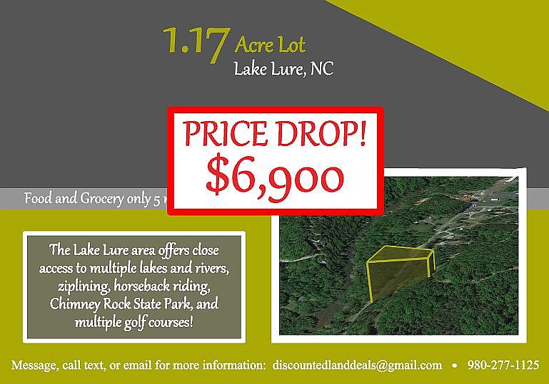 1.17 acres in Lake Lure, NC **CHEAP INVESMENT PROPERTY** Perfect for VRBO, AirBNB, Weekend Getaway! PERFECT FOR VRBO, VACATION RENTAL, AIRBNB, WEEKEND GETAWAY, RETIREMENT, OR INVESTMENT FOR YOUR FUTURE! This property is located in the beautiful Riverbend Community. Riverbend offers access to Mirror Lakes, "Old Swimming Hole", Hiking Trails, Lakefront beach, and an outdoor pavilion. This property is located in an ungated area of the community, but property ownership provides access to the same amenities as the properties within the gated area. The Lake Lure area offers close access to multiple lakes and rivers, ziplining, horseback riding, Chimney Rock State Park, and multiple golf courses. Enjoy the peaceful serenity of the Riverbend community! Property Details Address: 0 Roadrunner Circle, Lake Lure, NC 28746 State: NC City: Lake Lure County: Rutherford APN (Assessor’s Parcel Number): 1612568 GPS Coordinates to Locate Property: 35.423806, -82.157694 Lot size: 1.17 Acre Approx. Dimensions:106ft X 310ft X 219ft X 277ft Zoning: HOA Covenants & Restrictions (SEE BELOW) Building Restrictions: HOA Architectural Restrictions (SEE BELOW) Septic: Septic needs to be installed; Perc test has been completed and passed Water: Well needs to be installed Electricity: Service provided by Duke Power HOA: Riverbend of Lake Lure Annual HOA Fees: $500 Sq. Ft. Requirement: At least 1,000 sq ft of heated living space Building Restrictions: Modular and Stick Built Homes are allowed *Subject to Architectural Guidelines, Covenants, and Restrictions. Please request a copy if interested. Food 4 minutes away Grocery 7 minutes away Pharmacy 7 minutes away Hospital 21 minutes away Cedar Creek Stables 9 minute drive Lake Lure Flowering Bridge 14 minute drive Lake Lure 22 minute drive The Omni Grove Park Inn 1 hour 6 minute drive Hendersonville 53 minute drive Asheville 1 hour drive Hickory 1 hour 10 minute drive Charlotte 1 hour 43 minute drive Make this property YOURS for a cash discounted price of $6,900. We are motivated to sell - All offers will be considered! Message, call, text or email us today to get started. We make it super easy for you! **As with any purchase of land, Buyer is responsible for verifying all information with the city/county as to what can and cannot be done with the property and confirm availability of any utilities/services for the property. Seller makes no warranties or representations about the land.