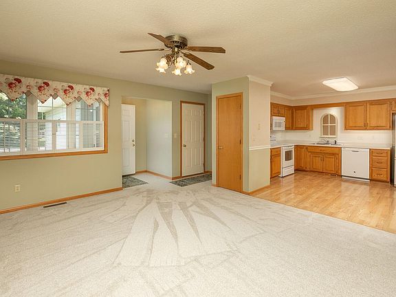 Bright and cheerful one level living with 2 spacious bedrooms. Low maintenance living with NO Association dues and NO restrictive rules! Clean pristine condition. Brand new carpeting and some new paint. Newer roof, furnace, central air conditioning, and water heater. Primary bedroom has walk-in closet and room for a king size bed! Open floor plan with eat-in kitchen. Plus the deck has just been freshly stained. A new early childhood center is under construction to the east of the home. We have been told that the property backing up to this property will mainly be a landscaped green space which will be pleasant to look at from the deck. Hurry to see this low cost home in move in condition as it will sell fast!