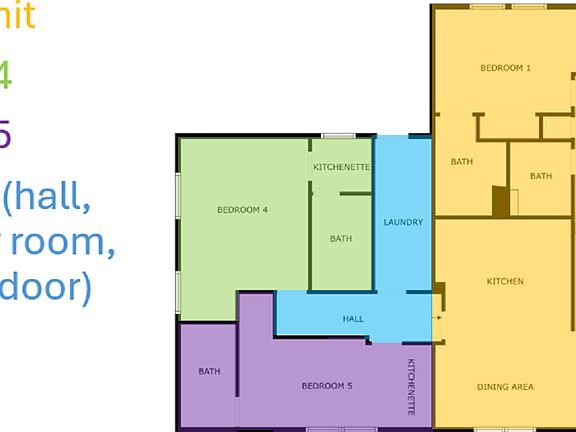 The property also has two studio units. the only shared interior is a hallway and the washer and dryer.