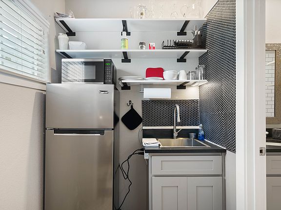 Splendid pecan treesWest-facing back patioElectric kettlePrivate bathroomBasic spicesVarious dishes and utensilsInduction cooktop