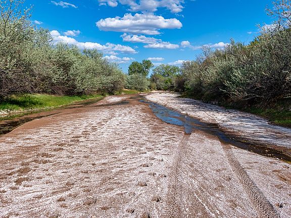 Nearly a hundred acres outside of Cerrillos, in two separate lots. The Galisteo Creek cuts across the northern lot, creating a lushly vegetated riparian area along the intermittent stream, with over 1000 feet of creek frontage. The property rises from the creek bed to elevated, rocky ridge tops with excellent views. 19 miles to the south side of Santa Fe; and near the entertainment and dining opportunities of Cerrillos and Madrid. Walking distance to Cerrillos. Property is difficult to find and surrounded by neighbors who value their privacy, please make an appointment to see.