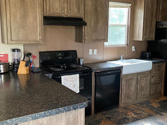 2017 Clayton 16x76 is well cared for with vinyl siding and shingle roof. Master has large closet, double sink vanity, soaker tub and separate shower. The land is 5.8 acres with large trees, front and rear porches and an outbuilding.