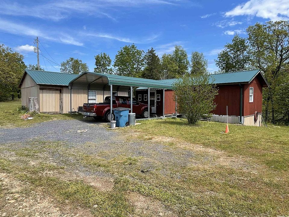 Unique cabin located on a little over half an acre with a new roof on the cabin, new shop roof, siding, new heat and air mini split, paint, gutters, front and back door, new wood burning stove, new enclosed from porch, freshly built covered back porch that offers a beautiful view. New appliances, fridge, washer, dryer come with this home.