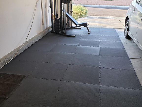 Like working out? TRX system and dual 150 lbs. stack (300lbs total) weight training machine in garage. One-inch foam mat for martial arts or stretching. No more gym fees!