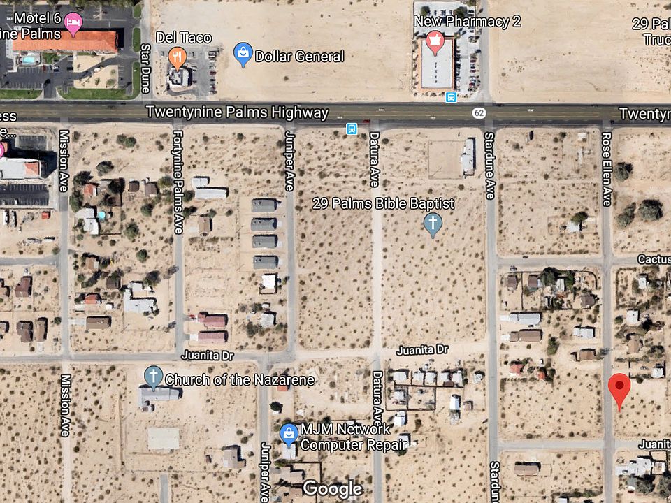 SELLER INSTALLMENT PLAN AVAILABLE! $400.00 Down Payment, $200.00 a month for 36 Months Cash Now Discounted Wholesale Price: $5,995.00 Desired Neighborhood. Great Lot to Build On. Paved Rd, Electricity! Close to Highway 62. About .25 Mile. Downtown 29 Palms about 1.5 miles! Restaurants, cafes, supermarkets, banking and more, all a short drive from your land. Twentynine Palms is just a few minutes away. This parcel is located about 1.5 miles from City of 29 Palms, allowing for easy access to all the desert has to offer. Yearly taxes are low. There are NO HOA FEES. NO TIME LIMIT TO BUILD so you can hold onto this lot or pass it onto your kids. Here is a chance to buy a Southern California Desert Land for 100% ownership. Property is sold FREE and CLEAR! Property Details: $400.00 Down Payment, $200.00 a month for 36 Months Cash Now Discounted Wholesale Price: $5,995.00 APN: 0616-134-11-0000 San Bernardino County, CA GPS Coordinates: 34.133057, -116.073949 Property Address: ROSE ELLEN AVE, Twentynine Palms, CA 92277 Legal Description: NE 1/4 NE 1/4 NE 1/4 SW 1/4 SEC 27 TP 1N R 8E Lot Size: 6,850 sq ft Lot Size: 0.16 AC Type: Residential Vacant Land Annual Taxes: $218.17 approximately. Taxes are current. There is no HOA fee. Title Conveyance: The title will be conveyed by Grant Deed. Doc Fee: $199.00 (We will prepare the Deed, and record it at the County Recorder office)