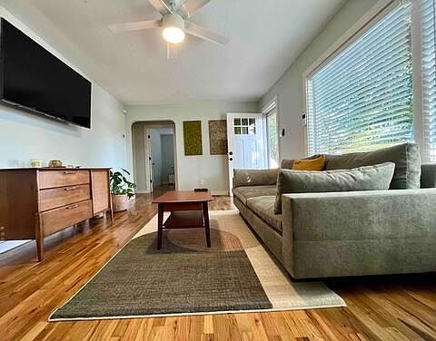 Fully renovated and furnished home in a quiet downtown Roswell neighborhood. Two bedroom one bath home with original hardwood flooring throughout. New appliances and a fully stocked kitchen. HUGE fenced in backyard makes this home great for someone with pets. Covered carport, driveway and street parking available.
