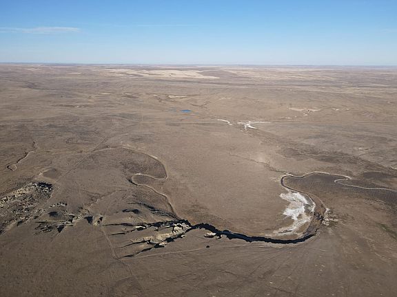The property features 964A± acres with no conservation easement restrictions, a public waterline is currently under construction through the ranch (with a minimal hook-up fee), and existing infrastructure such as a 2020-built open-ended calving barn and corrals. With two water wells, buried water lines, and numerous stock tanks, the ranch is well-suited for livestock operations, and the two creeks (North Willow Creek and Little Wall Creek) provide additional water sources.