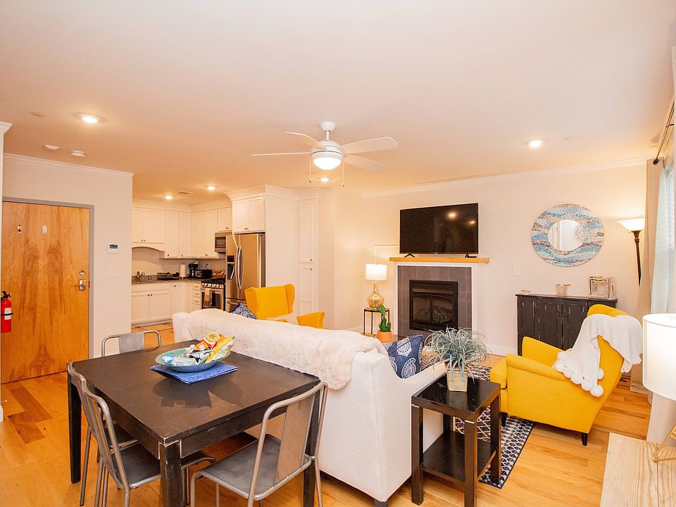 Luxury 2 bed 2 bath in newly constructed building with elevator. Located in Bostons South End steps to Northeastern, easy access to Boston Medical, Longwood Medical hospitals , Fenway, public transport and more.Third floor sun-filled unit ,open floor plan offers kitchen, dining and living area. 55 flatscreen tv, gas fireplace featured in the living room, comfortable seating to relax and enjoy movie night with friends and family. Dining table offers seating for 6, renovated kitchen with stainless steal appliances and granite countertops comes fully equipped for all of your cooking needs. Each Bedroom offers a queen sized bed, dresser, desk and tv. In unit laundry and central air make this the complete package to call your home away from home. 360-TOUR: **