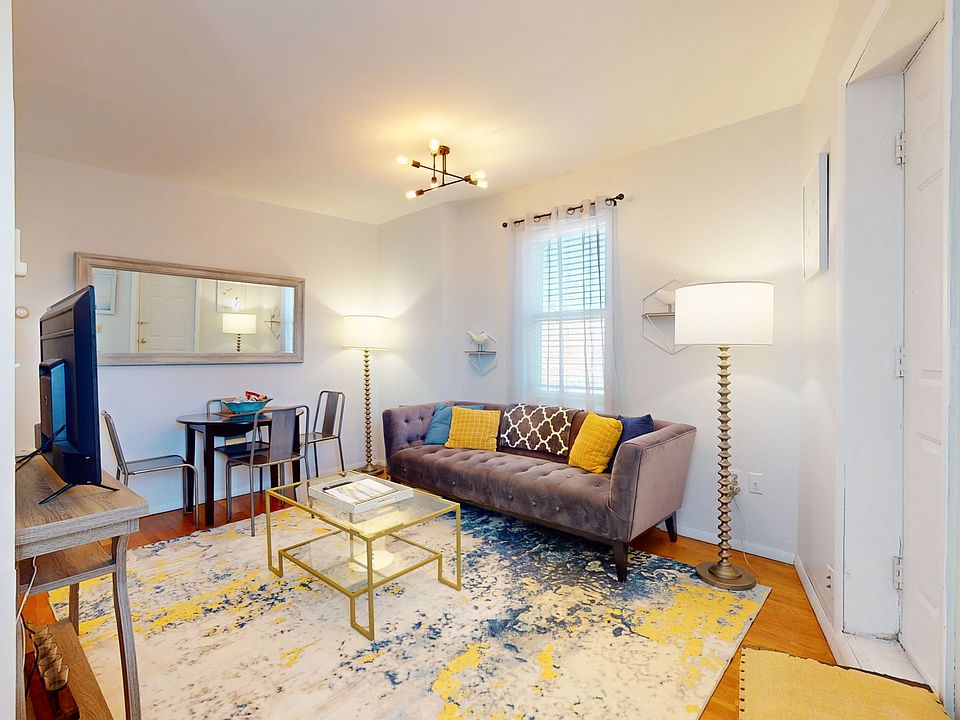 Sun-filled two bedroom located in Bostons South End / Roxbury line. steps to Northeastern, easy access to Boston Medical, Longwood Medical hospitals, Fenway, public transportation and more.Top floor unit features hardwood floors through out , comfortable living and dining area featuring flat screen tv, table for dining and sofa. Fully equipped kitchen with ample white cabinetry and granite countertops . both bedrooms offer queen sized beds, desks, dressers and tvs. In unit laundry and central air mini split system complete this 2 bedroom unit.