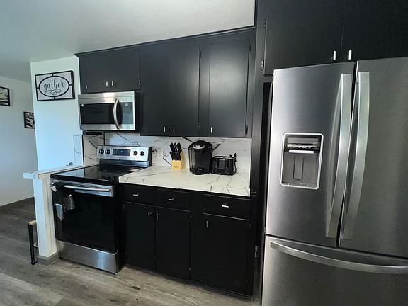 Washer and dryerUpdated bathroomNew flooringExtra large yardTile countertopsNew paintStainless steel appliances