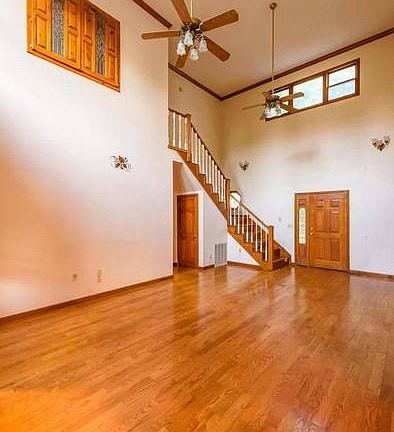 A beautiful 5 acres country property with 2.5 story home built in 1998, 4 bdrms & 3 full bathrooms in Ava, Douglas County, Missouri. It's about 55 miles from Silver Dollar City, Branson & Springfield, MO. Ava R-1 School District is about 8 miles away. RENTAL might be optional. VERY LOW COST ON THE MONTHLY ELECTRICITY BILLS (see picture for our monthly bills) & CHEAP PROPERTY TAX. Master bedroom (top level), Bedroom 2 (main level), Bedroom 3 (main level), Bedroom 4 (walk-out basement), Full walk-in basement with its own living space, bedroom, & bathroom. Hardwood flooring in the main floor, carpet in the bedrooms. The property has ''seasonal'' creek & has its own well. Winding secluded driveway takes you to this hill top beauty. The house cannot be seen from the road.