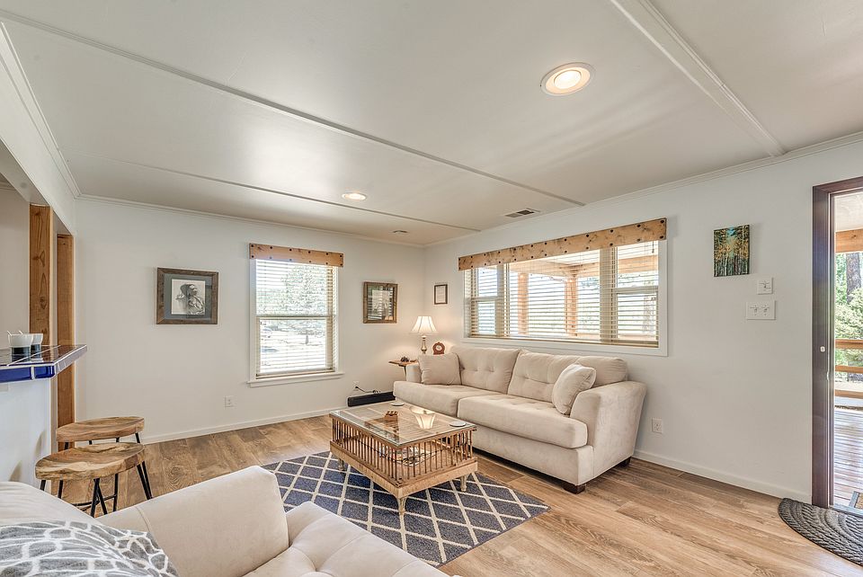 If comfort, cleanliness, and walkability are important to you, this is is! This fully furnished creampuff could not sit in a more perfect location. Walk down to eateries and shopping in the Village. Wingfield park for community events including ice skating over the Christmas/New Year's holiday are right across the street. Sits on gradual hill making it easy to get to, but protected from last year's weather events. Gorgeous views from the picnic table on the deck. Beautifully kept and appointed. 2 Bedroom, 2 Bathroom. Washer and Dryer in home. Large fenced yard. Only small, non-shedding breeds of pets considered. All adults require background and credit checks. Month to Month but may consider longer duration.