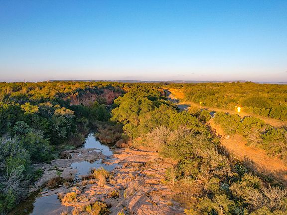 The Riverview Ranch just might be one of the most uniquely diverse properties of this size across the Texas hill country. The property is conveniently located near Yates Crossing with road frontage along FM 3480 and features Red Creek running through the center of the property, a giant rock bluff, and scenic overlooks of the Llano River Valley. One of the more distinct features of the property is large rock outcropping that creates a large waterfall feature when Red Creek is running. The topography is quite dramatic and a large portion of the property is below the bluff along Red Creek. The property is accessed off of the paved FM road and has had some brush work recently done that allows a vehicle to access the lane along top of the plateau. The property does not have direct access to the Llano river, but is within easy walking distance to the crossing.