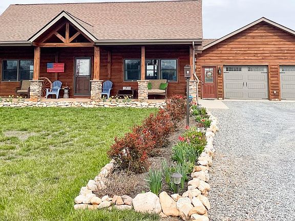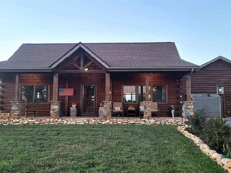 This modern log dream home on 1.2 acres epitomizes luxury living against the backdrop of the stunning Peaks of Otter Blue Ridge mountains. Upon entering notice a flood of natural light provided by oversized Anderson windows framing mountain vistas. Striking 16ft stone fireplace wall and gas stove completes the cozy living room. Main level master with adjoining office all with more views! Oversized 2 car garage with attached 10x28 workshop built-in workbenches and double door egress, providing ample space for hobbies, projects and storage!