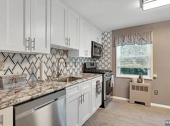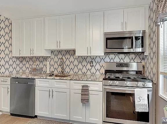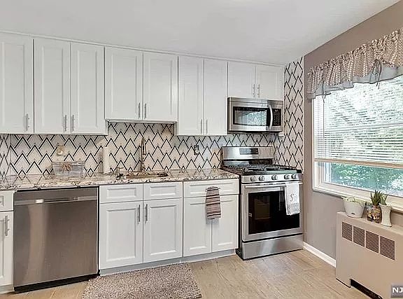Beautifully renovated 2-bedroom apartment on Hastings Avenue in Rutherford, located on a quiet dead-end street offering extra privacy and scenic river/open-area views. Features a modern kitchen with marble countertops, shaker cabinets, tile backsplash, stainless steel appliances, and LED lighting. Spacious living room and bedrooms with brand-new hardwood floors throughout.