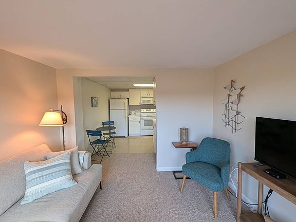 Fully furnished 1-bedroom, 1-bath + office apartment, located in the lower level of a quiet, owner-occupied oceanfront home in Rye, NH. The apartment offers a private direct entrance, coastal marsh views, and easy access to Pirate's Cove/Wallis Sands Beach. The apartment is part of a private residence and includes shared access to the oceanfront porch and deck, with seasonal stairs providing direct beach access. Features include: - Kitchen with full-size fridge, oven, electric stove, Keurig coffee maker, toaster, and all kitchen implements, dishes,bowls and cookware. - Living room includes flat screen TV with included basic cable and smart TV capability. Wifi (not wired) internet included - Bathroom with shower stall and sink - New Towels, new bed and bedding. - No laundry, no dishwasher, no garbage disposal. - Office includes desk and reading chair. - Free onsite off-street parking. All basic utilities included: water, heat, electricity, basic cable & wifi. Snow plowing of driveway is included, but tenant is responsible for shoveling and sanding walkway from apt. to car for their own safety. Please note that beach steps have been pulled up for the winter and any beach access is at renter's own discretion and risk. Easy beach access 1/4 mile away at Pirate's Cove and Wallis Sands State beach. Terms: - $2150/month - Short term rental, Month-to-Month - Maximum occupancy 2 people. - No pets, no smoking - Proof of income required - $50 credit check / background check fee, to be requested after viewing & rental application has been accepted - Credit check required, minimum score 700. Background check, prior rental references required. - Security Deposit (Equal to One Month Rent) required before move-in. Terms: - $2150/month - Short term rental, Month-to-Month - Maximum occupancy 2 people. - No pets, no smoking - Proof of income required - $50 credit check / background check fee, to be requested after viewing & rental application has been accepted - Credit check required, minimum score 700. Background check, prior rental references required. - Security Deposit (Equal to One Month Rent) required before move-in. All basic utilities included: water, heat, electricity, basic cable & wifi. Snow plowing of driveway is included, but tenant is responsible for shoveling and sanding walkway from apt. to car for their own safety.