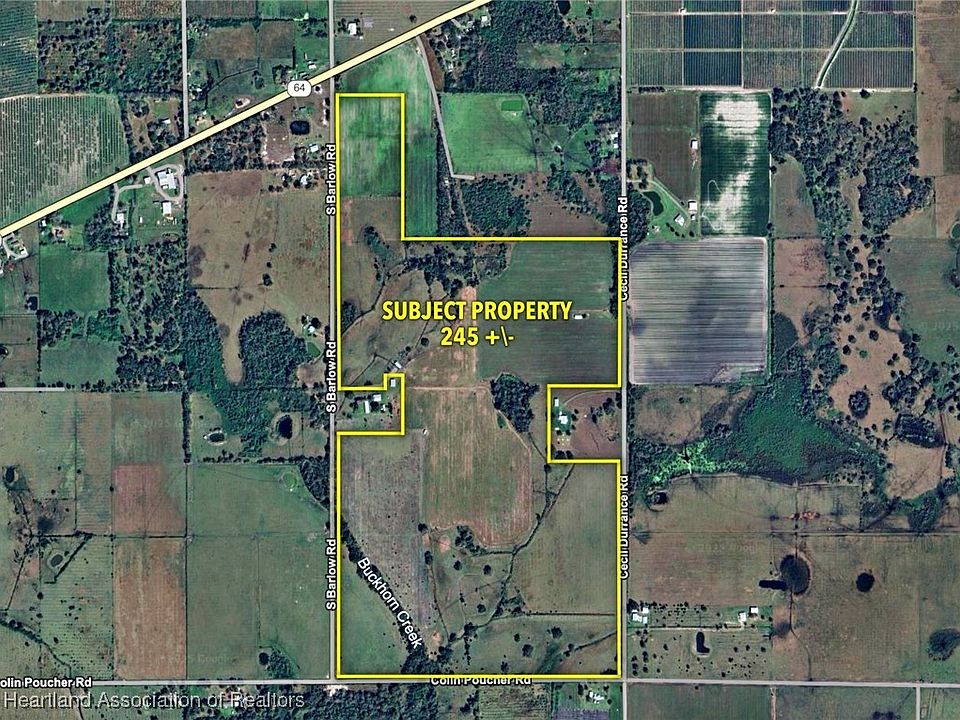 Currently set up as a fully operational cattle ranch, the property is equipped with cow pens, a penning lane, and cross-fencing. Two barns provide ample storage - one measuring 30×50 and the other 24×60 - perfect for hay or equipment. Whether you keep running cattle, plant crops, or grow sod, this ranch offers endless possibilities in a prime Central Florida location. The extensive road frontage will allow for development and multiple division opportunities.