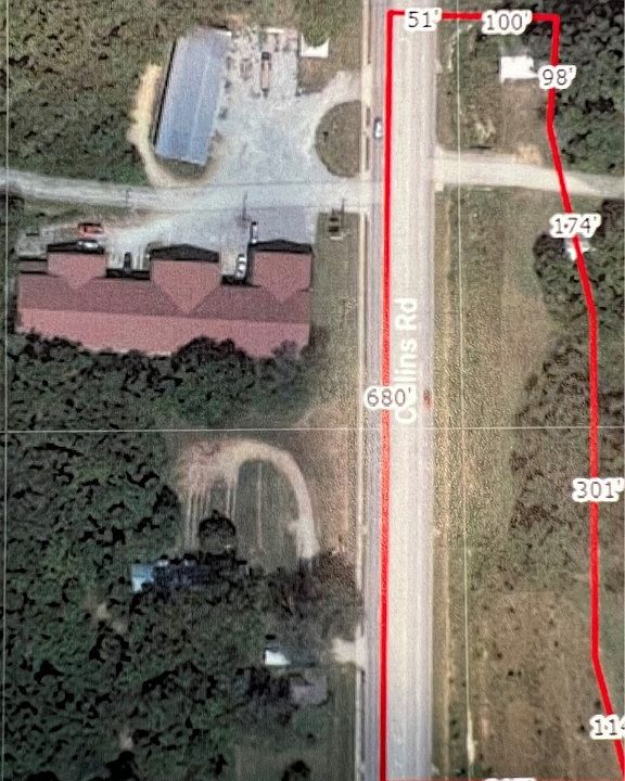 CORNERS ARE FLAGGED * Excellent location with highway frontage going into Gentry! 1.32 acres Fronts Hwy 59/Collins Rd- some level and some sloped. Old barn on the property and an old warehouse building. (There is a road/access between the side with the barn and the side with the warehouse- so it's like having two separate business spaces!) There used to be an Old house behind this property line - Has been torn down and is being removed-IS NOT part of this property. Pink survey flag at back side of the barn shows the boundary on that side. Property is just inside the City limits of Gentry. Utilities on site. Property is shown in 100 yr flood plain but barn and warehouse have never flooded -
