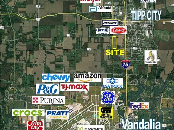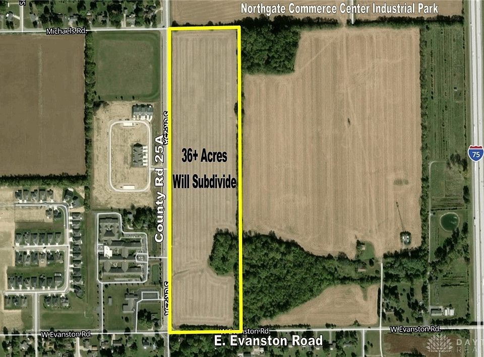 36 Acres in the North Dayton market just north of the Dayton International Airport with lot split opportunities, over a half mile of road frontage, and high traffic count along S. County Road 25A. Strategic location in North Dayton Market in Tipp City only one-half mile from I-75, 3 miles north of the Dayton International Airport (major Distribution HUB), and 6 miles north of I-70. Zoned for Office Services with Office, Medical, R&D, and other business Uses. Will subdivide lots from 5 acres and up. Public water and sanitary sewer available. Located next to the Northgate Commerce Center Industrial Park and neighboring 96+ acres also available and perfect location for hospital, medical/dental offices & clinics, professional offices, laboratory, research & development (R&D), personal care facility, commercial multi-tenant complex, daycare center, church and religious facilities, and more. Flat topography, construction ready, and perfect for your single-use or multi-use needs. Call today for full details.