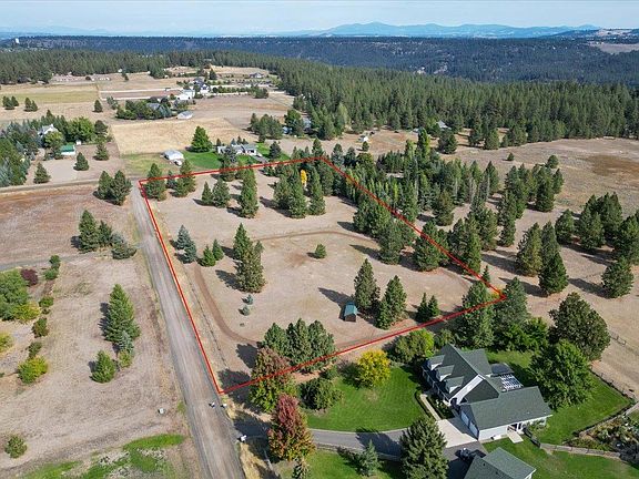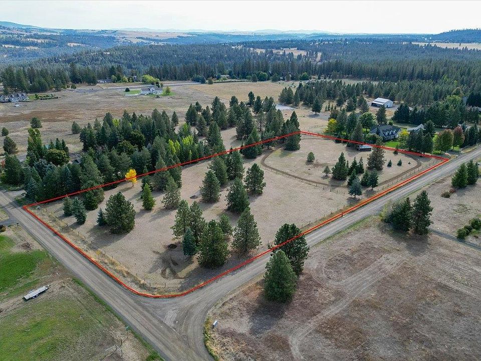 This area is called Paradise Rim for a reason. Beautiful 4.31 acre corner parcel with improvements already in place. Property has a select variety of well cared for evergreens providing an aesthetic appeal and privacy. Fully fenced and cross fenced, charming run-in shed for animals, including two wells (one operating with power, last time of testing they were 8 & 11 gpm) and power on the property. All you have to do is decide where to build your dream home. Short 5 minute drive to services and grocery store and only 15 minutes to downtown Spokane. Neighborhood has a trail system for riding or walking which allows for a friendly atmosphere. This parcel can also be purchased with the home and acreage next door, MLS #202413992