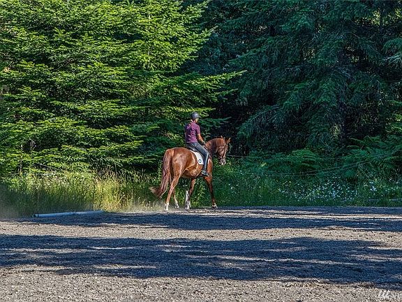 Home & land to complement each other & you. Purposefully created in 2011 for living in balance w/ nature & animals. Sophisticated details & design. Master & en-suite. Elegant finishes w/12 ceilings. 20 acres offer deep privacy & diversity yet minutes to town. PNW Scenic Trail directly accessible from outside your door. Meadows & undulating trails. Sweet smell of pine and sound of dancing wind in the trees! European-style horse accommodation easily adaptable to fit your passion. ADU on property.