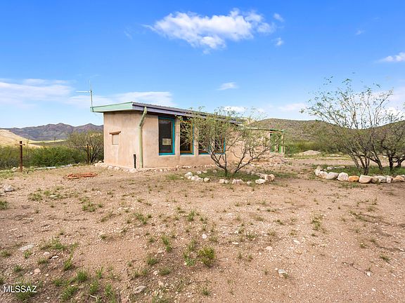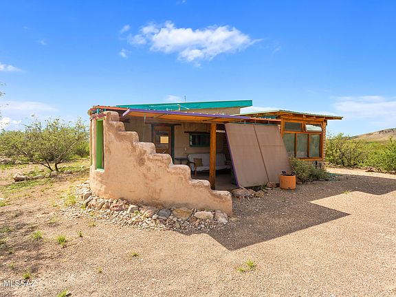 Off-Grid Oasis with Panoramic Views in the Mule Mountain FoothillsEscape to serenity on 9.2 acres of breathtaking high-desert beauty, nestled in the foothills of the Mule Mountains. This one-of-a-kind off-grid property offers 360-degree views, abundant privacy, and sustainable living without compromising comfort or charm. At the heart of the property is a thoughtfully built 306 sq ft mud adobe casita, reinforced with rebar and steel mesh. Warm and welcoming, it features 14-inch-thick adobe walls for exceptional insulation, along with dual-pane, custom-crafted Alder wood windows and doors. Slate countertops, reclaimed from a historic church roof add character to the kitchen, while traditional adobe floors provide timeless charm. The roof is insulated with perlite for year-round (MORE) efficiency. Just steps across the patio sits a spacious 76 sq ft
