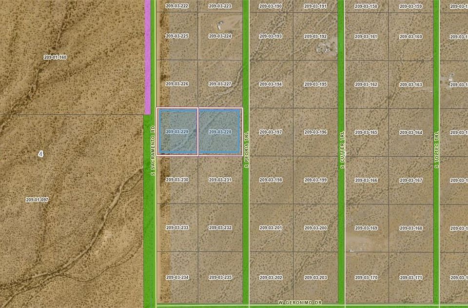2 lots side by side. Use now or later. Use for camping on a long weekend get-a-way. Lots of room for off-roading, horseback riding, hiking and mountain biking. Drive by and view anytime. Come on out and play in the desert. Price is firm.