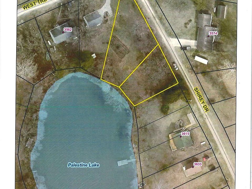 Thinking of building a lake home or a get away cottage? Here's a double lot on Palestine Lake that is approximately .45 acres with 100' of lake front. Palestine Lake is a 290 acre non-ski lake with a maximum depth of 27 ft. Best known for it's good fishing of large mouth bass, yellow perch, bluegill, and crappie. This land parcel features a quiet location, 230 ft. of road front, some mature trees, and great lake views. REMC fiber internet service will be available for this location. Soil testing and the county health department's septic requirements for a future septic system have been completed and are available.