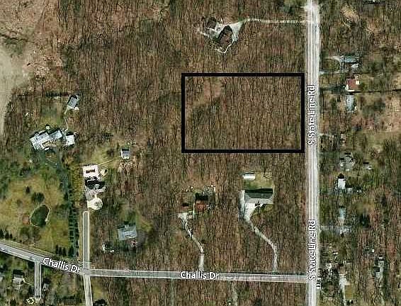 This 5 acre lushly forested property in unincorporated Crete has several mature oak trees and two creeks running through it, one at each end of the lot. It is the last unimproved parcel available in this secluded area, and is surrounded on three sides by heavily wooded properties with gracious established homes. The property is a 330 ft. x 655 ft. perfect rectangle and is sized to provide an opportunity for building both an estate-sized home and an outbuilding for a workshop, artist studio, or other hobby building. Location: the 330-ft. State Line Road Frontage begins 400 feet north of Challis. Survey is in the photos.