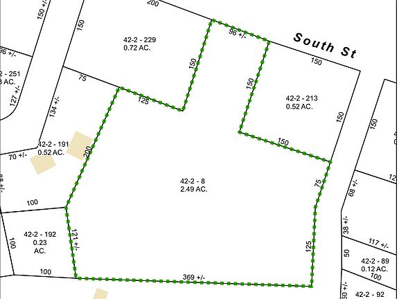 Sale includes two contiguous lots (42-2-213 & 42-2-8). Total of 3.1 Acres. Great opportunity for new construction or investment. Road frontage on South St., mostly level terrain. Based off the plans provided you are responsible for approvals. Drive-bys permitted; reach out to listing agent prior to walking the property. Please see attached for wetland report and feasibility study.