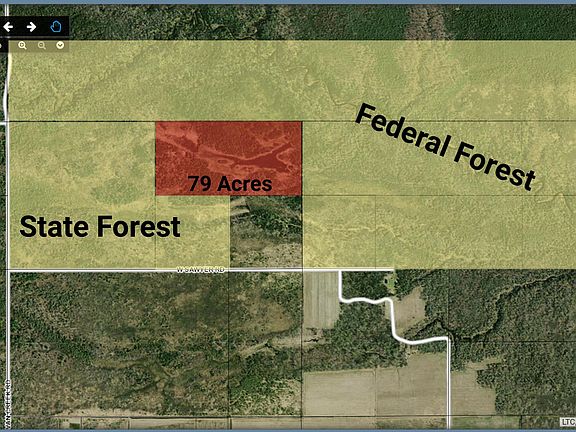 79-Acre hunting parcel bordering national forest land. Property has established easement access from S Sullivan Creek Rd. Mixed terrain with forested portions bordering a large pond on the eastern half of the acreage. Existing trail leads to a camp clearing in the northwest corner, which is accessible by ORVs. This land offers the utmost seclusion for building a camp or using as a seasonal hunt site.
