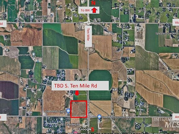 Located in the central hub of the Treasure Valley, this is an opportunity to own a hard corner in the path of progress. This premium 16.21 acres is located on the Northwest corner of S. Ten Mile Road and Amity Road with great access to I-84. Future city plans call for high density residential/multi-use development. Some of the uses include: high density multi-family, townhouses, business, offices, schools, churches, etc. Future ACHD plans call for 5 lane road to this location from I-84. Ten Mile Road is currently 5 lanes 1 mile north of this location. City water lines are stubbed in the street. Currently zoned RUT until annexed into the city.