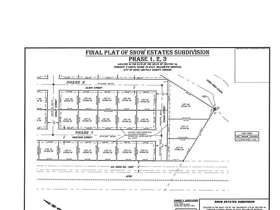 29.35 Acres (+/-) of residential development land zoned R1 in beautiful Echo, Or. The property is flat with water and sewer rear the North edge. Grade adequate for sewer. Property has been fully designed with all engineering completed by Anderson Perry. Topography is exceptional for development. Echo is located on the South side of I-84 near the massive growth currently happening in western Umatilla County. 1 mile from freeway interchange, 8 miles from Hermiston, 20 miles West of Pendleton and 27 miles East of Boardman, Or. Echo schools are very popular and economic driver for the community. Go Cougars! Echo boats 2 wineries, a quaint downtown, Echo Hills Golf Course, 2 museums and wonderful climate enjoyed in Eastern Oregon.