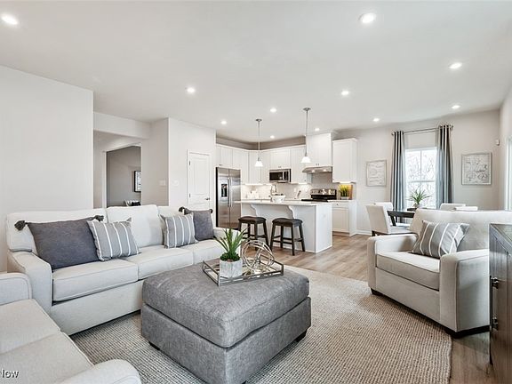 The Alberti Ranch single-family home has it all. Enter the foyer and discover an open-concept living space made to fit how you live. The gourmet kitchen, dinette, and family room flow together effortlessly. Through a recessed opening, find a luxurious owner's bedroom with a double bowl vanity, oversized shower and a walk-in closet. Two more bedrooms sit in a separate wing, or opt for flex space to use as a study or office. An optional covered porch brings the outside in for extra living space. A finished lower level can feature a full bath and bedroom. The Alberti Ranch is just right.