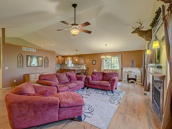 Discover spacious, light-filled living in this charming 3 bed, 2 bath home. The open layout is designed for comfort and connection, featuring vaulted ceilings, warm wood floors, a cozy fireplace, and a stylish kitchen with newly updated stainless steel appliances. Effortless flow between the living, dining, and kitchen areas makes everyday living and entertaining a breeze. The lower level offers in-floor heat, generously sized bedrooms with large closets, and a conveniently located laundry room. Major updates—including a new furnace, AC, water heater, and upgraded garage door and opener—means you can move in with confidence, knowing the big-ticket items are already taken care of for years to come. Nestled in an inviting neighborhood just off Hwy 29, with quick access to downtown, Spring Valley Golf Course, Crystal Cave, Eau Galle Beach, and more. This is one you won’t want to miss!