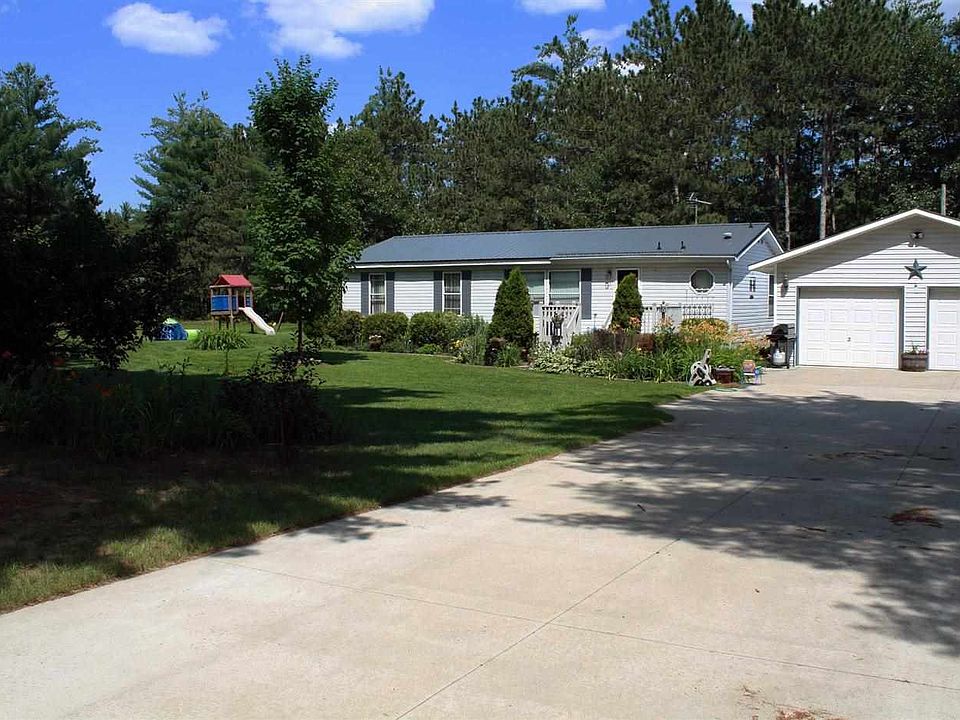 Easy living on 1.25 acres! NEW Steel Roof on House & Shop! New carpet! Mastersuite w/soaking tub, shower, walk-in closet. Kitchen has new flooring & gas stove! Living/Dining combo are bright over looking a lovely setting. Detached 2-car gar. & an amazing 40x40 Wick bldg. w/2-car gar, heat, hot water, electric, office, dark rm, windows, separate holding tank & much more! Bring your business, hobbies & toys! Beautiful landscaping. Close to lake, fishing & hunting.