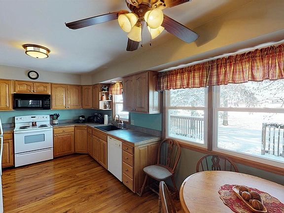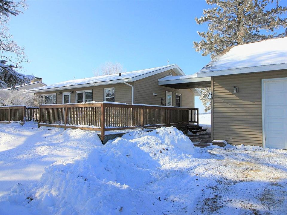 Excellent location makes this 2 bedroom property country living at it's finest! Relax with farm field views out the large picture window in the living room, or sit on the large deck and enjoy the sunrise! Kitchen, dining room, and living room all adjoin to make this house warm and inviting! Unfinished basement has potential with beaver system installed. Heated garage/shop has additional bathroom. On just under one acre of land, home is updated throughout; this is a must see! Price of house includes new roof.