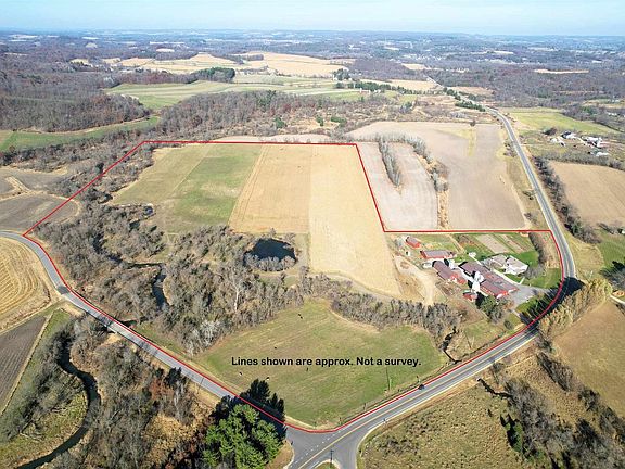 Amish farmstead and cabinet shop on 63 acres featuring a 7-bedroom home built in 2001 with spacious living areas, hardwood floors, 3 open porches, a walkout and finished basement, new steel roof, and newer walnut cabinets. No electric, but running water from an artesian well. The cabinet shop includes three connected sections: 40x60 finish room, 44x70 saw room, and a newer 50x78 addition, all with concrete floors and dust collection. Farm buildings include a 30x90 livestock barn with updated stalls and 2nd floor hay mow, 40x80 machine shed, corn crib, feed bins, woodshed, and pump house. Land offers 35 tillable acres tiled in 2019 and 15 acres pasture with natural water source, all certified organic.