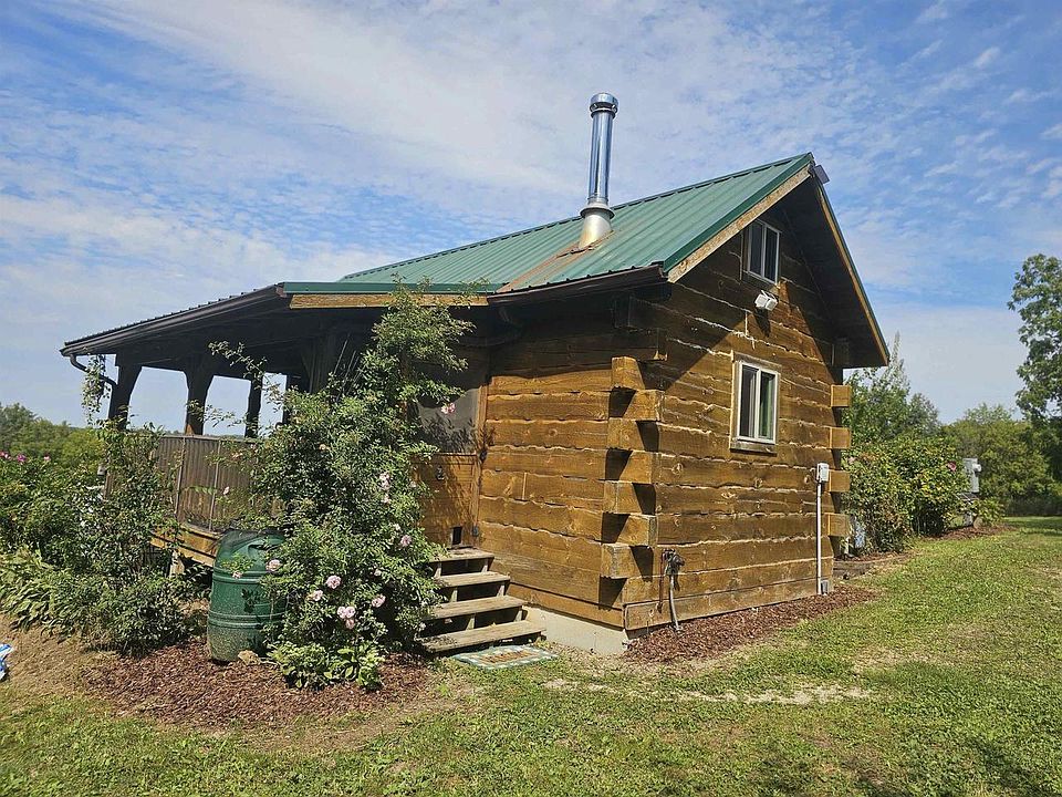 Beautiful 'semi-off grid' log cabin on just over one acre 10 to 15 min from Viroqua on dead end road. Fruit trees, organic gardens, perennials, herb gardens and Bonus additional small cottage! Main log cabin and additions include 3 upper loft sleeping areas, wood burning stove and loads of charm and comfort. Great year round, weekend retreat or possible Airbnb. Has newer electric service installed, liquid propane and internet and convenient out-house. NO well or septic but could be added by new owner.