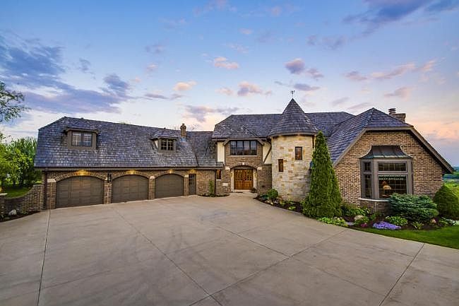Your home is your castle, truer words were never spoken, now YOU can live it! Impressive brick & stone Tudor, complete with 2-story turret, stands stately atop one of the tallest points in the county with views that will take your breath away. Every room, every window, every detail was thoughtfully planned to take full advantage of the 360 degree view. Conveniently located for work & play; no need to drive for hours, escape to your own sanctuary. Kettle Moraine schools!