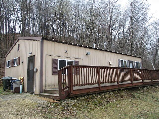 1 STORY RANCH STYLE CLEARY BUILDING THAT FEATURES 2 BEDROOMS, BATH, OPEN CONCEPT KITCHEN AND LIVING ROOM AREA. FREE STANDING WOOD FIREPLACE, UTILITY/MUD ROOM. LP GAS RADIANT HEAT, PRIVATE WELL, HOLDING TANK SEPTIC, GARDEN/STORAGE SHED ALL ON 2.76 SURVEYED WOODED ACRES THAT OVERLOOKS ELK RUN CREEK.