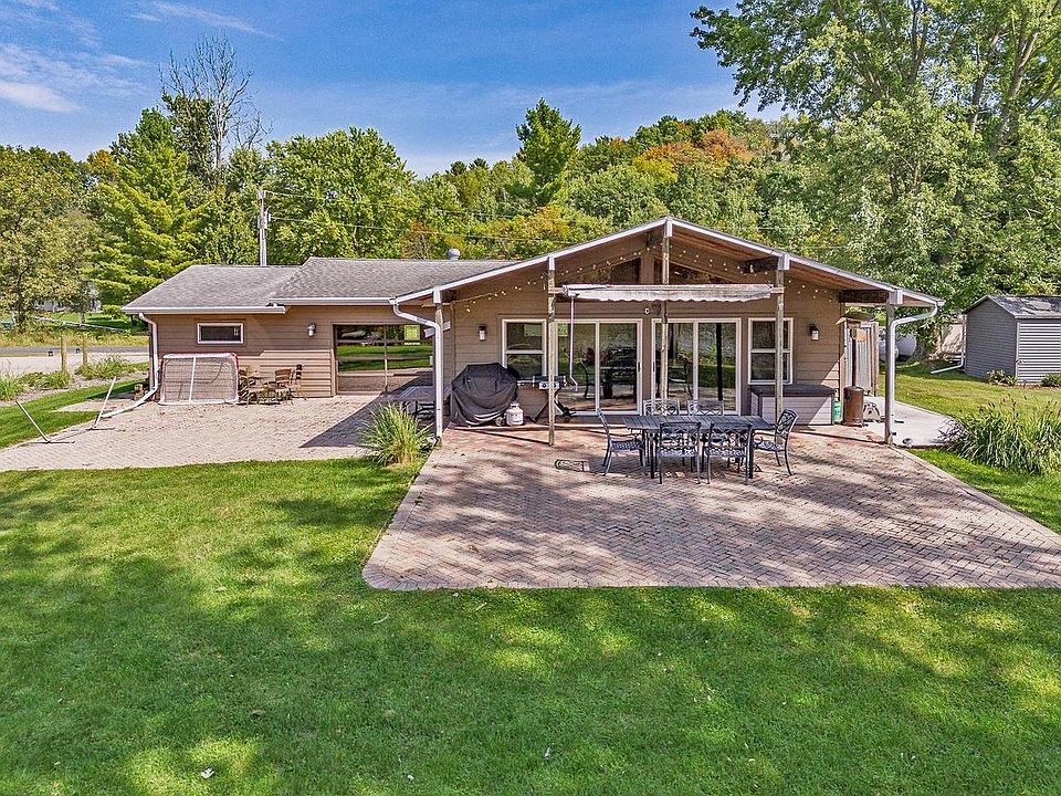 Lake life is calling! Fun 2BR/1BA waterfront cottage on a LEVEL lot w/90? of shoreline for easy swimming, fishing & relaxing. Inside you?ll love the huge great room w/wood vaulted ceiling, upscale kitchen w/granite tops, stainless appliances & glass-tile backsplash, spacious dining area & living room w/gas fireplace that opens to the tremendous lakefront patio. Updated bath w/dual vanity & jetted tub/shower. The rec room w/unique window-filled garage door lets you enjoy the lake views inside or out! 1-car garage, plenty of outdoor space & best of all?it?s being sold furnished so you can start making memories at the lake right away! Don't let someone else snatch this one!