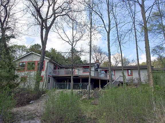 Your private sanctuary awaits! Nestled on just over 6 Acres, this Ranch home offers an open concept floor plan. The Great Room offers a 2-way Brick Natural Fireplace/Gas Logs and Cathedral Ceilings. Kitchen/Dinette area offers Solid Surface tops, Center Island, and built-in Appliances. Off the Dinette area there are patio doors which open to the expansive deck with views over looking your conservancy area! The Current Office space can also be used for Formal Dining or a Family Sitting area. Exposed Finished walk-out Lower Level offers a Rec Room with Gas FirePlace, Bath with a walk-in Shower, Workshop area, plus plenty of storage. There are 2 tax key's with this property other lot may be built on, there would be a shared drive and out building would need to be removed. Details on file.